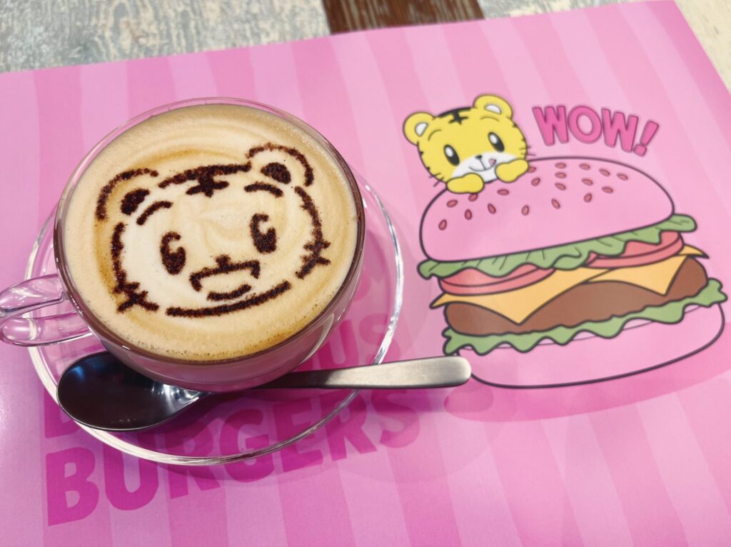 「しまじろう」のフェイスアートを施したラテアートがかわいい一杯。飲むのがもったいない!