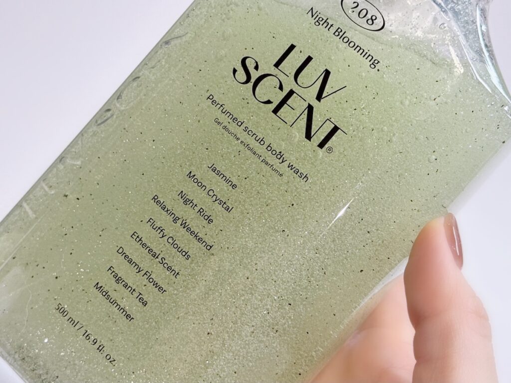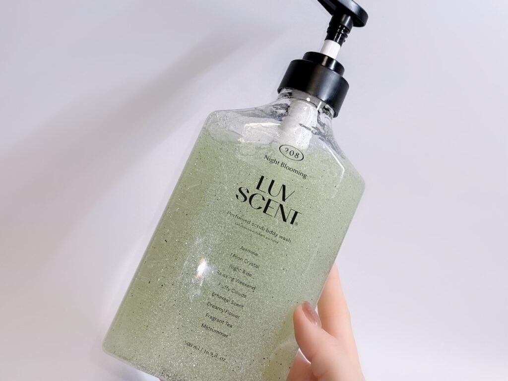 「LUV SCENT(ラブセント)」のスクラブボディウォッシュは、泡立てて使えばやさしく角質ケアができ、泡立てず直接肌につければスペシャルケアのゴマージュとしても使える1品。弱酸性の洗浄剤と、ココナツの皮やパーライトなど天然のスクラブで、なめらかでしっとりとうるおう愛され肌に導きます。