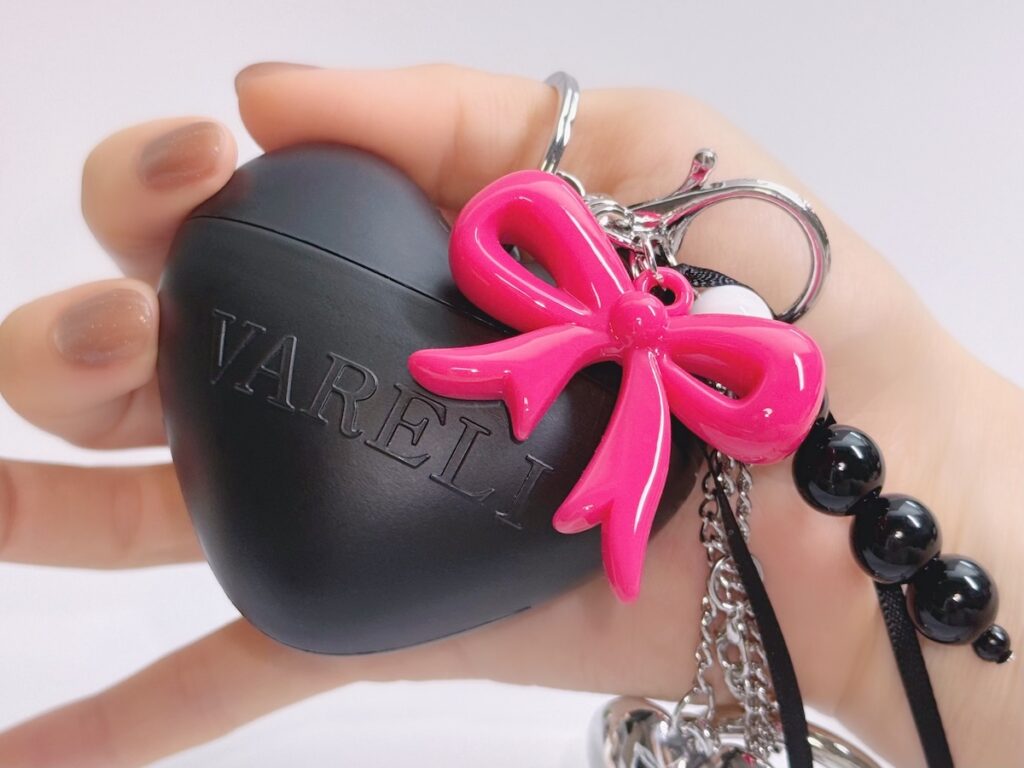 もう1つ、チャームコスメでチェックしておきたいのが「VARELI(ヴァレリ)」のハンドクリーム。なんとハンドクリームのパッケージそのものがハート型になっており、付属のチャームとともにキーホルダーとして持ち歩けるようになっています。