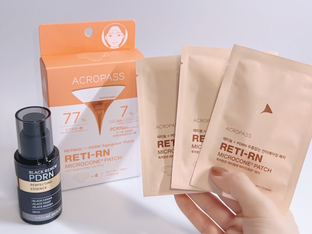 また、「ACROPASS(アクロパス)」からは、PRDN(*5)とレチノール(*6)を配合したスポット集中ケア用のニードルパッチが登場。T型のパッチに目に見えないほど繊細なニードル(針)がついており、気になる眉間の悩みにピンっとフィット。週2〜3回のスペシャルケアにおすすめです。