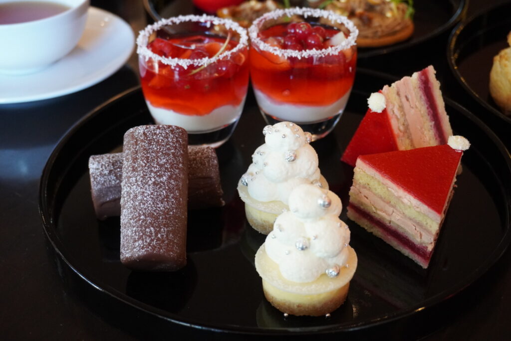 ドリンクは、ドイツの老舗ブランド「ロンネフェルト」の紅茶を中心に、14種類のティーセレクションとコーヒー各種をフリーフローで好きなだけ。おすすめは、冬季限定の「ルイボスウィンタープラム」。コクのあるルイボスに、甘くフルーティーなプラムとシナモンの香りが重なり、冬の午後にふさわしい深い余韻を残します。