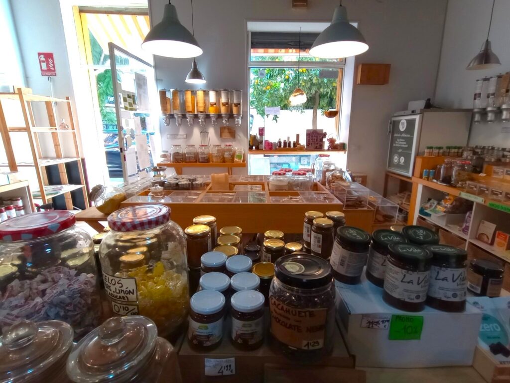 「だからここにある商品は、自分が本当に欲しいものばかりなんだ」と笑顔で話してくださったのが印象的でした。量り売りに加えて、オーガニックアイテムやバレンシア産の食品など、「ローカル」「小規模生産者」を応援する品揃えにこだわっています。