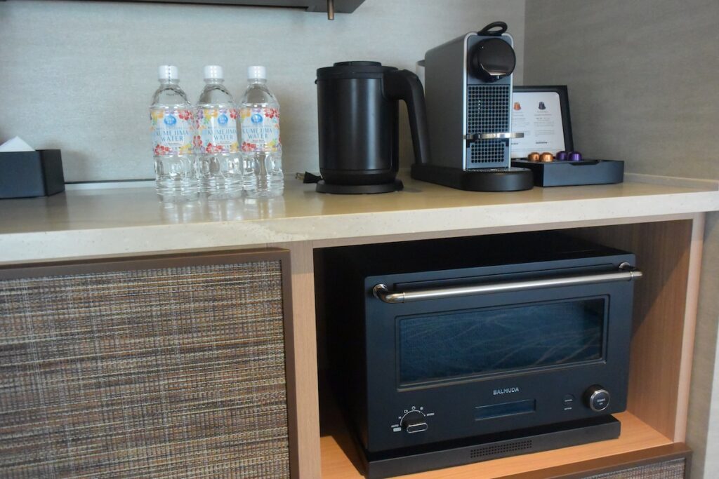 「BALMUDA(バルミューダ)」の電子レンジや冷凍冷蔵庫、ドラム式洗濯乾燥機などを備わっており、長期滞在でも快適な環境が揃っています。