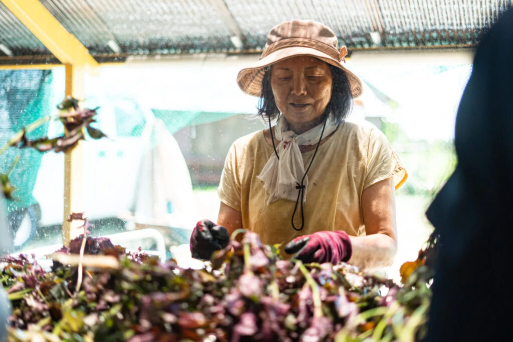 ここでていねいに育てられる赤しそには、地域の里山保全、そして文化を未来へつないでいく役割があるのだそうです。その想いを紐解いていきます。