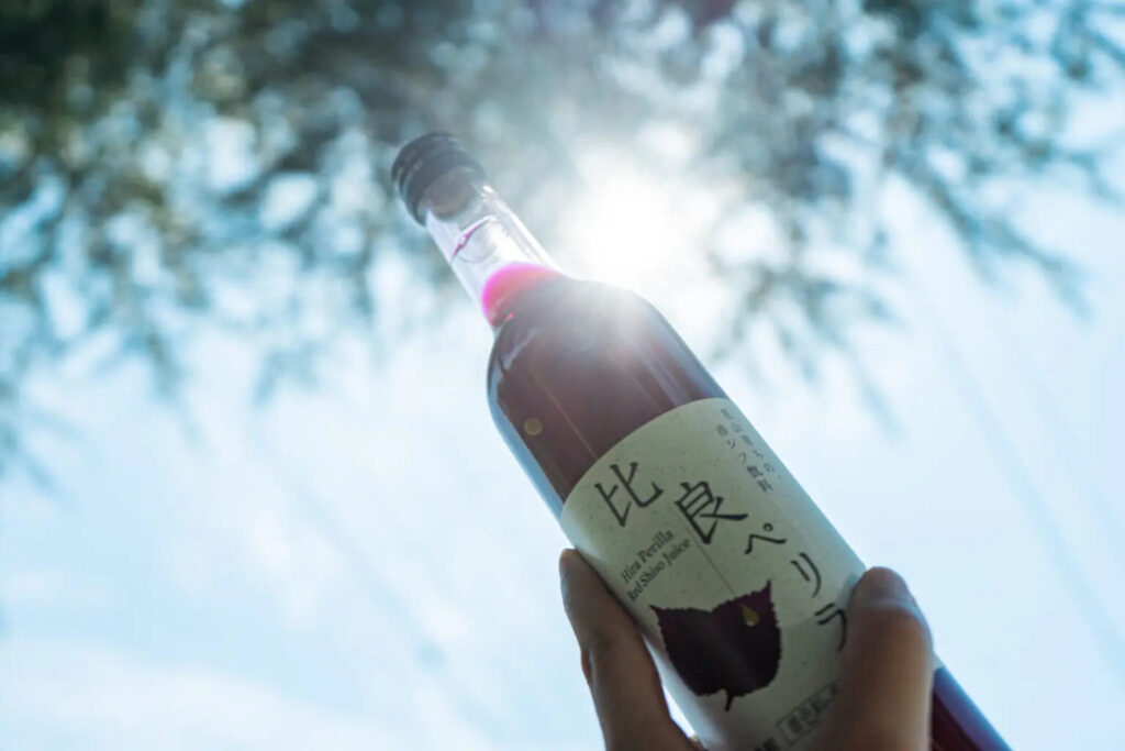 比良の里山を保全し、農地を放棄しないようにとの想いからできた、赤しそ飲料「比良ぺリラ」。