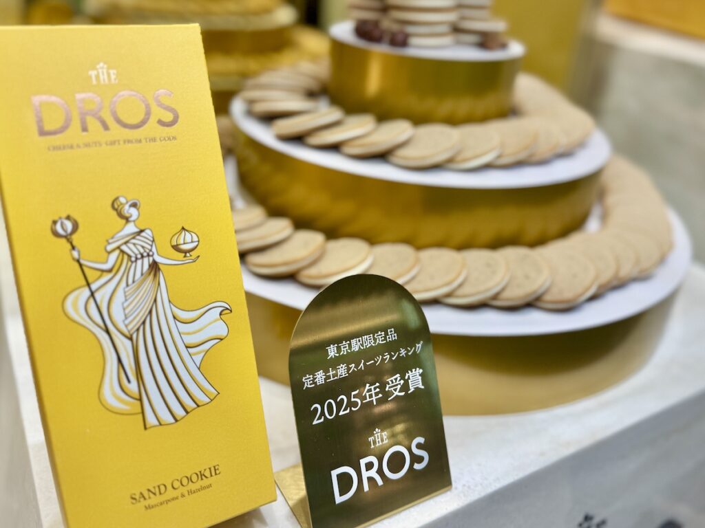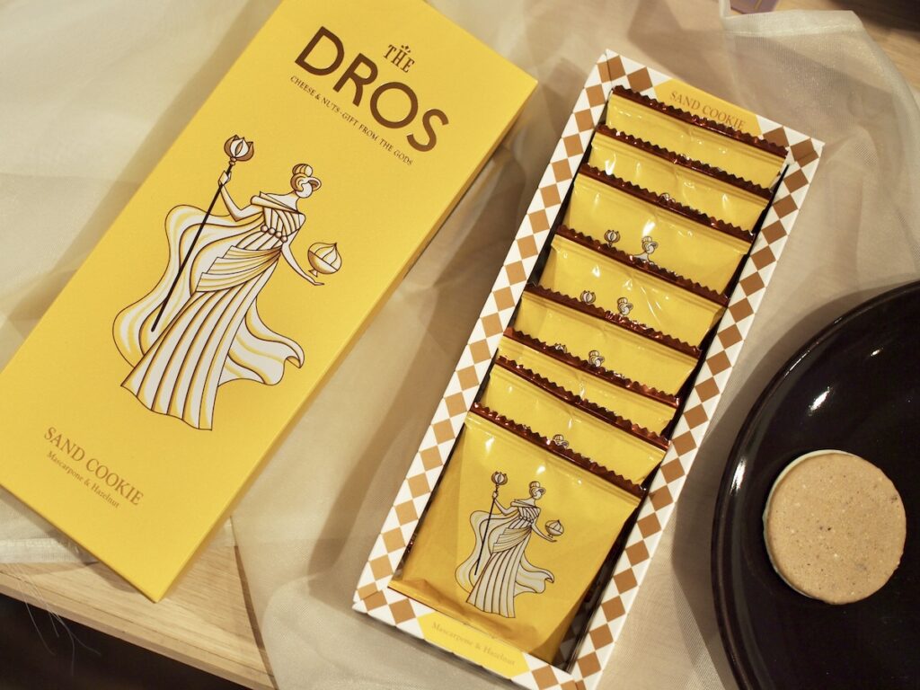 上品で洗練された雰囲気が魅力の「THE DROS」。こちらのサンドクッキーは、マスカルポーネのまろやかさと、ヘーゼルナッツの香ばしさを掛け合わせた大人向けフレーバーです。