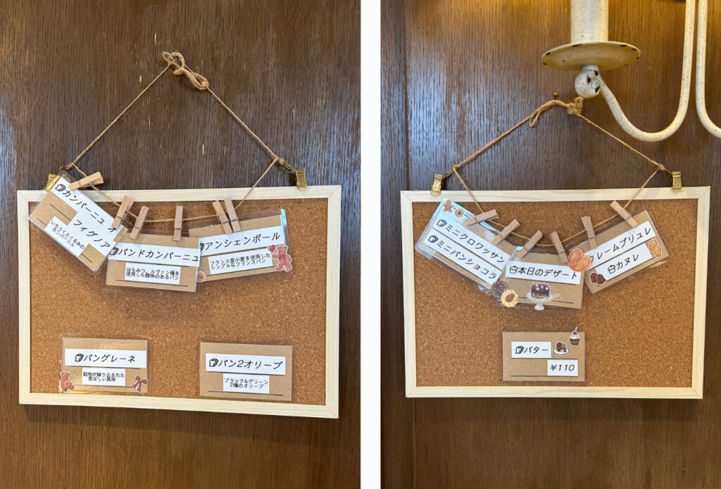 ・メニュー:クロワッサンやパン・オ・ショコラ、食事パンに加え、人気のキッシュ、サラダ、スープ、デザート(カヌレやブリュレ)