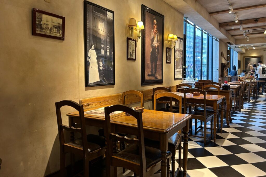 一歩店内に入ると、そこはヨーロッパにあるブーランジェリーのような雰囲気が漂っていて、とてもおしゃれ。照明や壁画、家具なども、ヨーロッパの飲食店の雰囲気に似ていて、フランスのカフェを思い出します。