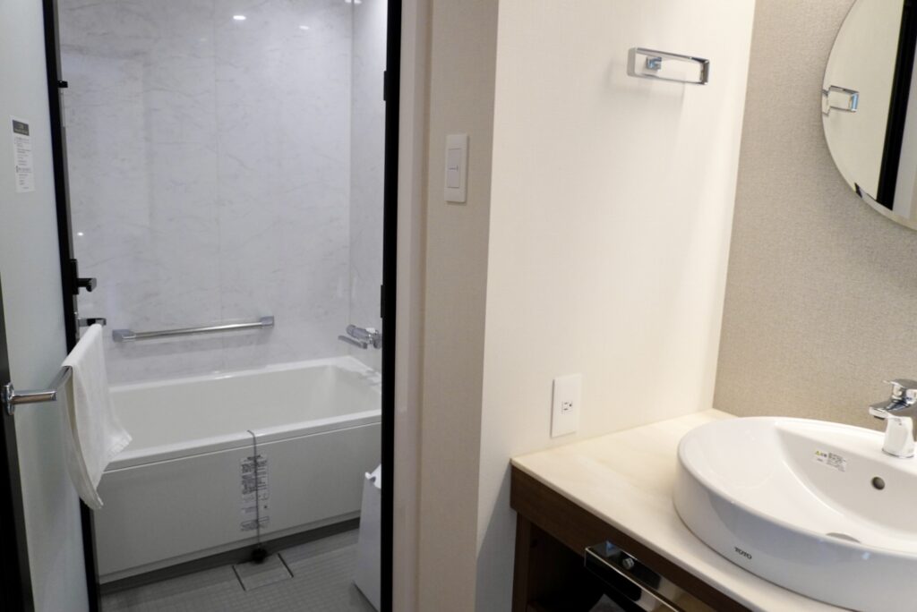バスルームはセパレートタイプ。湯に身を沈めるだけで、身体の緊張がゆっくりほどけていくのを感じました。