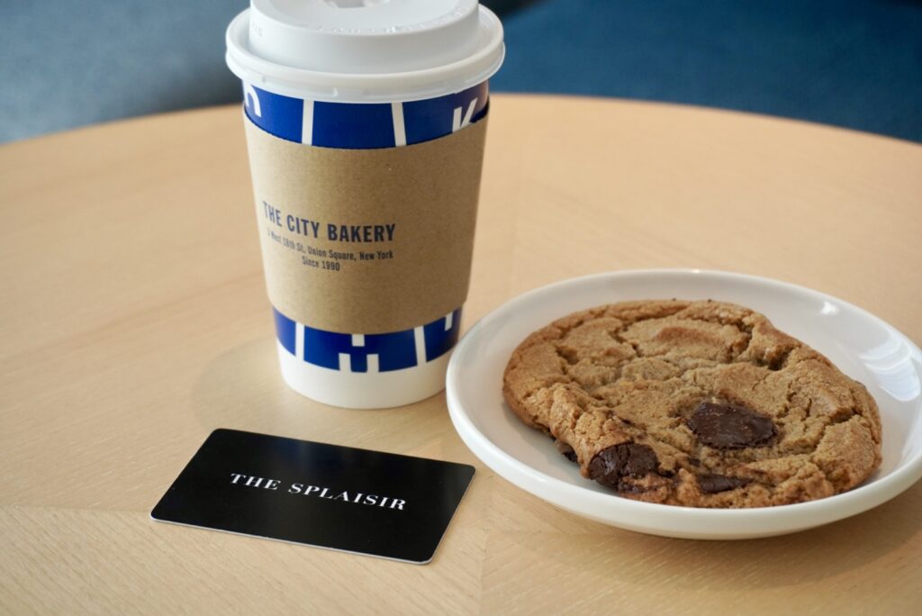滞在の合間に立ち寄ったのは、ホテル内に併設されたTHE CITY BAKERY。テイクアウトで選んだのは、店員さんイチオシのクッキーと、気持ちを切り替えるためのホットコーヒー。部屋に持ち帰り、窓辺でゆっくりと味わう時間。誰かと分け合うのではなく、自分のペースで、ひと口ずつ。忙しい日々の中では、意外と持てていなかった“間”。その静かな余韻が、心を内側から整えていくのを感じます。