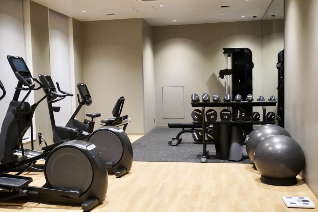 また、館内には宿泊者専用のフィットネスジムが完備されているので自身のペースで汗を流すこともできます。客室のテレビはスマートテレビ搭載なので、Youtubeを観たり、アカウントがあればAmazonPrimeやNetflixを楽しむこともできます。