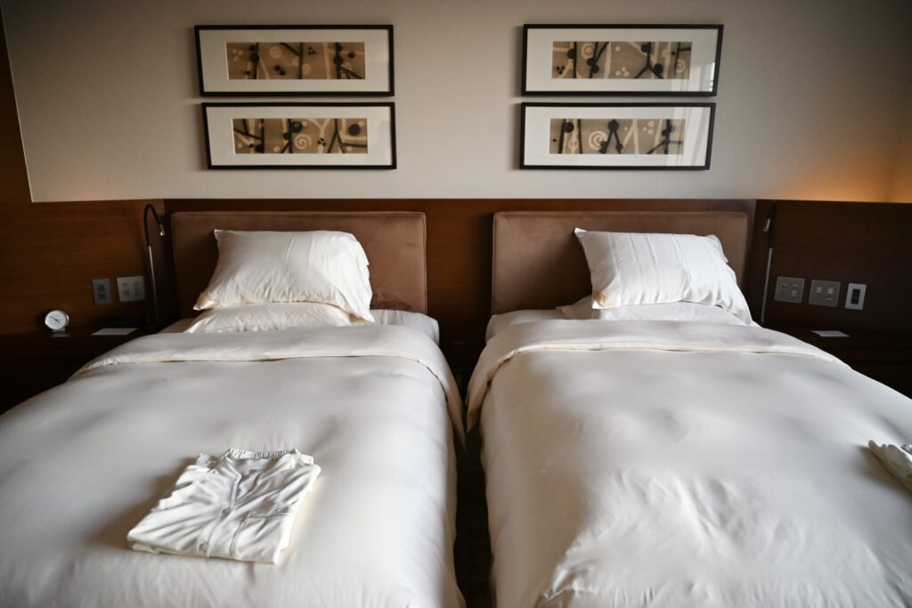 客室で袖を通すリカバリーウェアは、軽やかでやさしい肌触り。肩や背中の緊張が解けていくのが、体感としてわかります。枕に頭を預けると、包み込まれるような安定感。血行を促し、深い休息へ導く設え。夜の静けさが、からだに染み込む感覚。都会にいながら、呼吸が整う、翌朝の目覚めの軽さが、このプランの価値を物語ります。