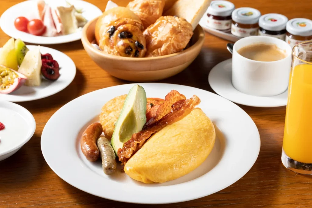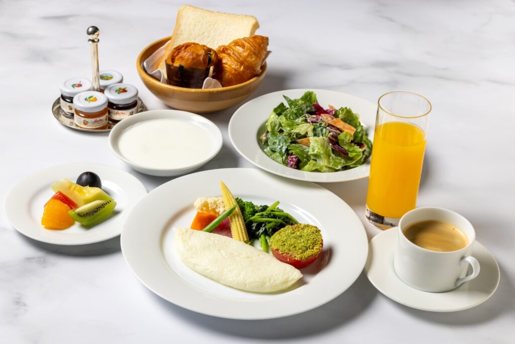 朝食は、人気の「ブレックファスト ビュッフェ」または、ホワイトオムレツなどのヘルシーな構成が魅力の「ヘルシーブレックファスト」から選択可能。身体の状態や気分に合わせて“最適解”を選べる設計です。