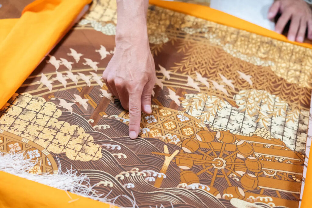 大正時代には、京都から現在の滋賀県守山市に拠点を移し、以来100年以上にわたりこの地で事業を継続してきました。その織りの技は、皇室への献上品としても用いられ、昭和天皇や上皇后美智子さまへ納めた作品もあるといいます。
