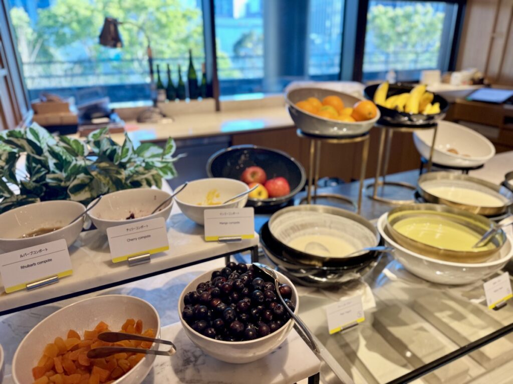 フルーツコーナーには、驚くほどみずみずしい果物が並び、色合いの美しさに思わず足を止めてしまいます。そのままでも十分に甘く、余計なものを足さなくても満足できる味わいでした。