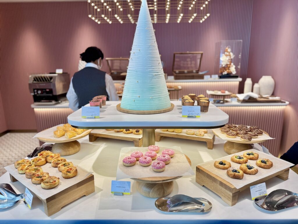また、パンやスイーツが並ぶコーナーは、淡いピンクを基調とした可愛らしい空間に。焼きたてのパンとともに、思わず写真を撮りたくなるフォトジェニックさも、気分を上げてくれます。