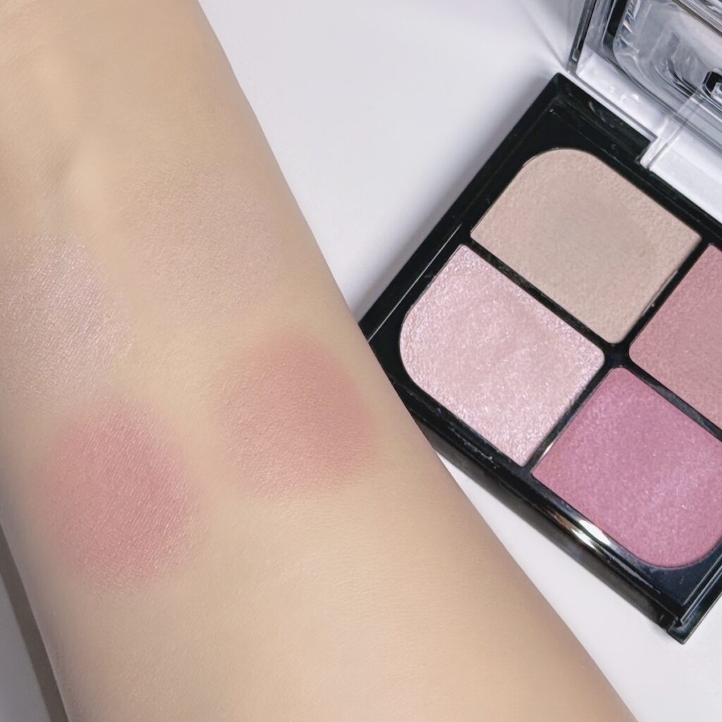 アイシャドウの新色「シフォンピンク」は、軽やかな透け感発色のパウダーに上品なパール感を含ませたピンクベージュ系パレット。お仕事の日は上段と左下の3色でまとめて、オフモードの日には右下のピンクを取り入れて華やかに、など、シーンによっても使い分けやすい構成となっています。