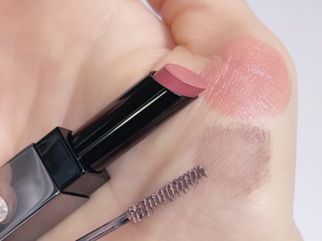 リップの限定色「チェリーチャーム」は、甘すぎず落ち着きすぎない、絶妙なミルキー感が魅力のピンクカラー。そして新作のマルチマスカラ「シェリーブラウン」は、まろやかなピンクニュアンスを含んだベージュ系マスカラとなっており、アイシャドウとの合わせ使いにもぴったりです。