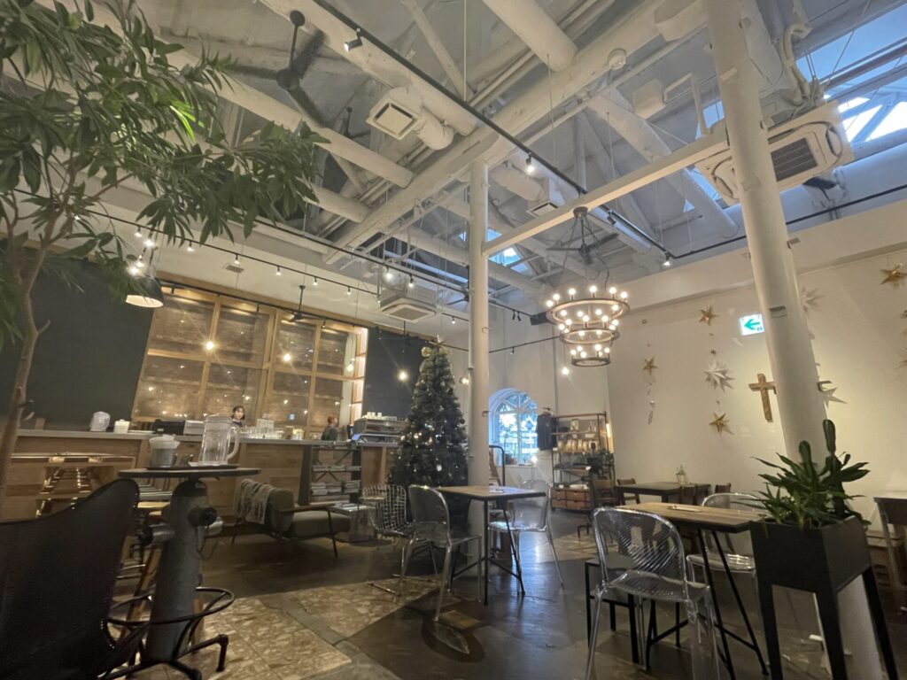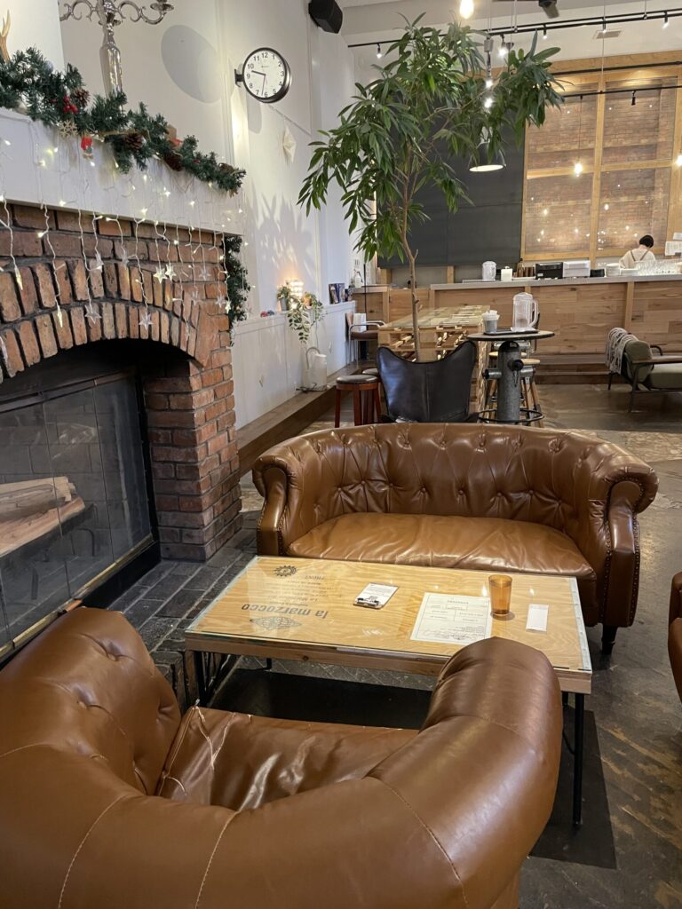 私は平日朝一にお邪魔したので、比較的空いている時間帯にあたりました。幸運なことに暖炉の席の真横のレザーソファがあいており、まったりと過ごさせていただきました。 キラキラ輝く照明、大きなクリスマスツリー(私がお邪魔したのはクリスマスシーズンでした)、見渡せば星や十字架などの細かいデコレーションの数々、そして軽妙なクリスマスソング。 どこをとってもこれは「アメリカのクリスマス」! なんてワクワクする空間なんだろうと私はうっとり。