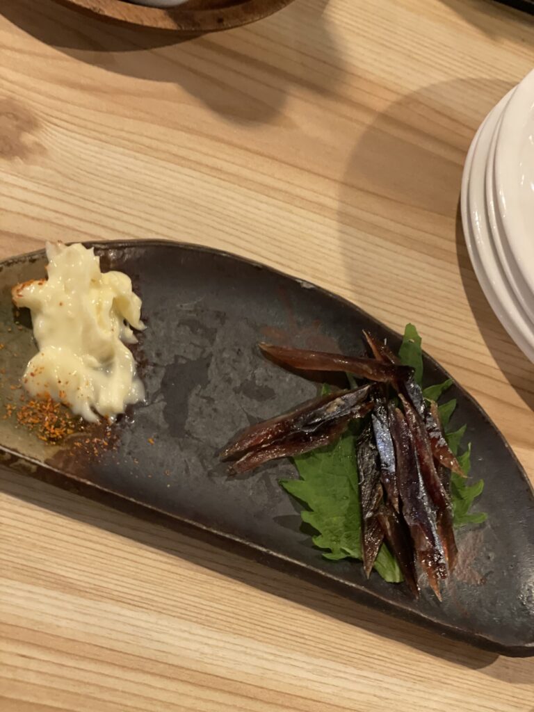 身欠きにしんに、旭川といえば「男山」だろうということで日本酒を熱燗で。おすすめは秋田の鹿角のもつ煮。ほかにも炙りたらこ、牛すじ煮、変わり種では揚げパンなど、美味しくお酒が進みそうなメニューが壁にズラリと貼られており、目移りすることまちがいなし。