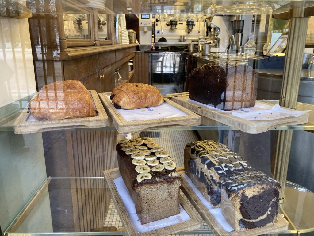 一見分かりづらいのですが、目印はガラスのウィンドーに並んでいる美味しそうなヴィエノワズリー(甘めのパン)! 私も初めて訪れた際は、ガラス越しからも香りが漂ってきそうなそのクロワッサンに惹かれて、カフェの扉をえい! と開けました。