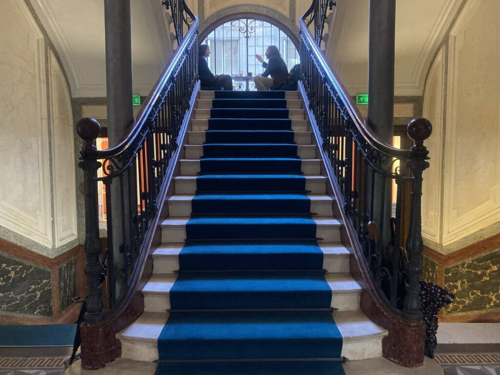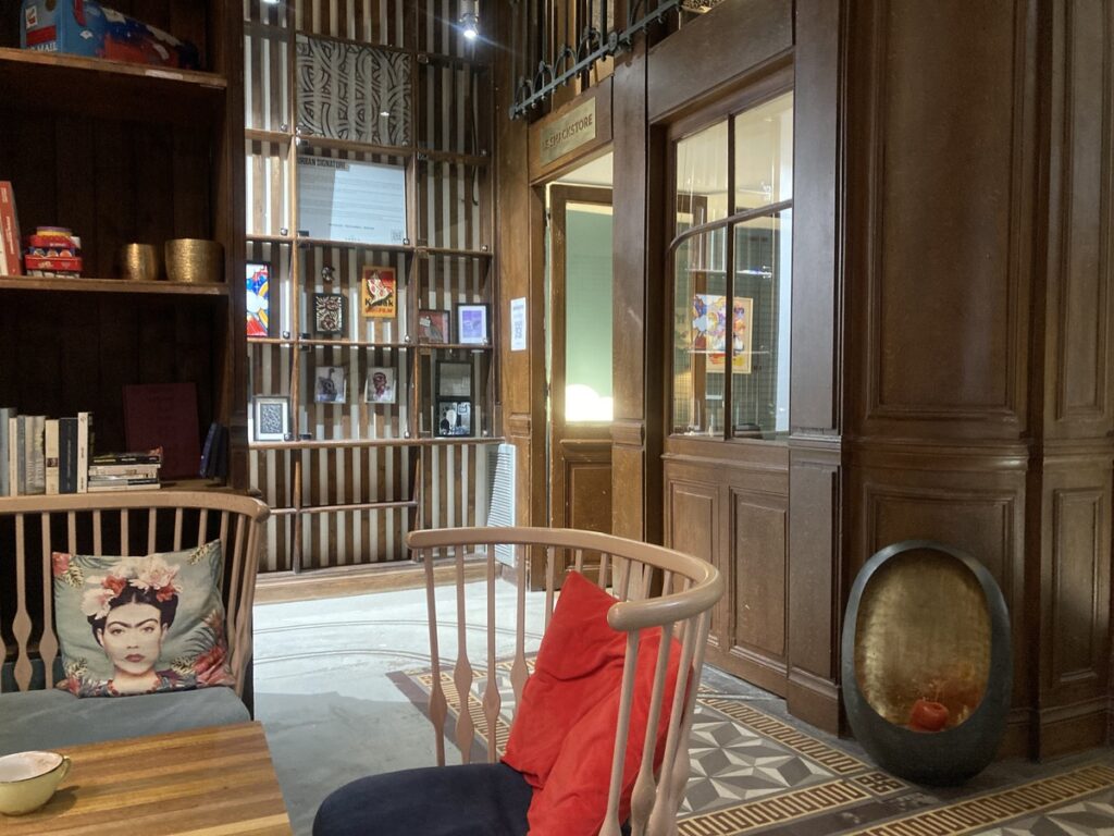 重厚な扉に、ここがカフェ?! と目を疑いそうなエントランス…。それもそのはず、この場所にはかつて、カルマン・レヴィ出版社の「印刷所」が存在していました。カフェとして生まれ変わったのは2020年のことです。