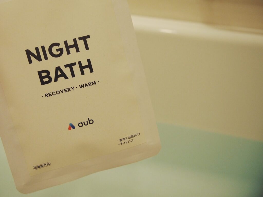 バスタイムは5種の生薬と2種の温泉成分を配合した医薬部外品の入浴剤「NIGHT BATH」(AuB株式会社)をバスタブへ。