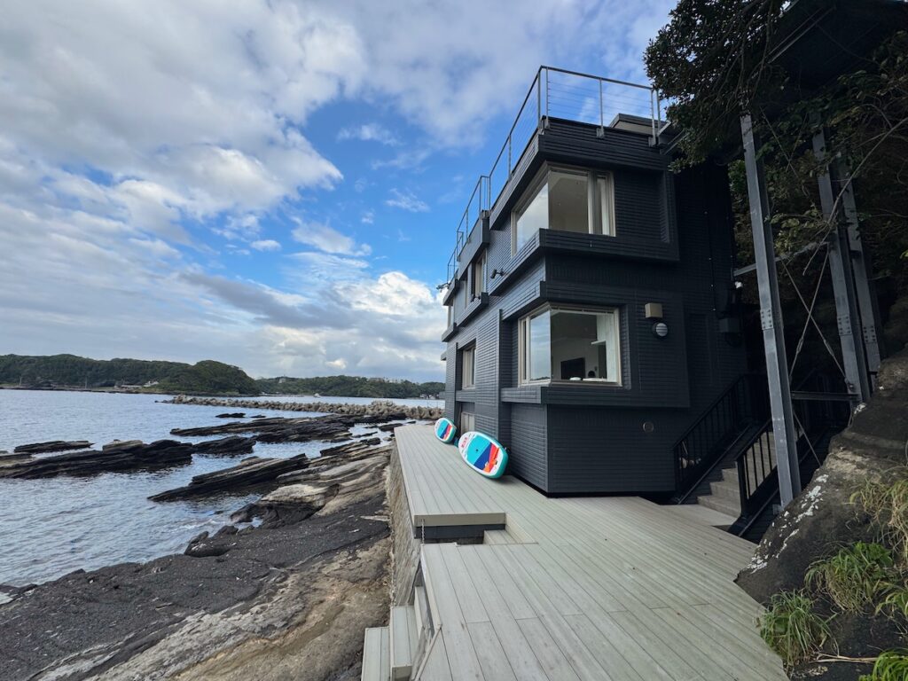 2025年7月にオープンした、ギフトハウスの最新施設「GIFTHOUSE三浦 諸磯」。今注目を集めている“一棟貸切ヴィラ”で、SUPやBBQ、焚き火などのアクティビティを楽しめるのが魅力です。