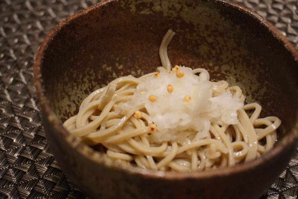 仕上げに供された蕎麦は、さっぱりと軽やかで、コース全体を締めくくる心地よい余韻を残しました。
