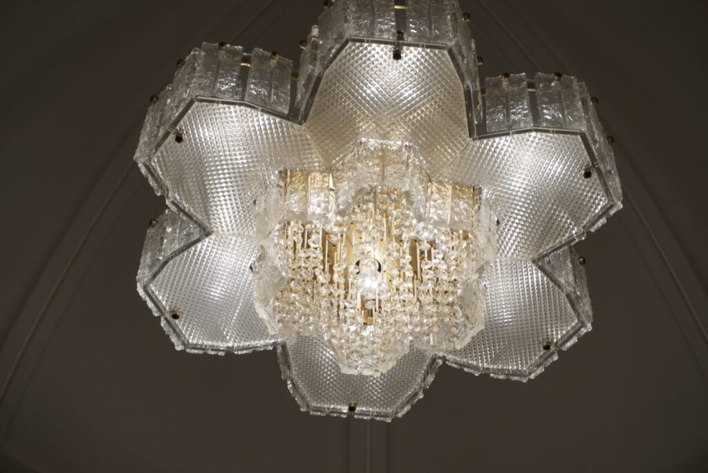 歩みを進めるたびに出会う意匠の数々には、日本を代表する建築家・村野藤吾(むらの とうご)氏の美意識と遊び心が随所に息づいています。村野氏は、広島の「世界平和記念聖堂」や東京の「迎賓館(旧赤坂離宮の改修)」などを手がけ、戦後日本の建築史に大きな足跡を残した巨匠です。名前を知らなくても、実は日常の中で村野建築に触れている方は少なくないかもしれません。