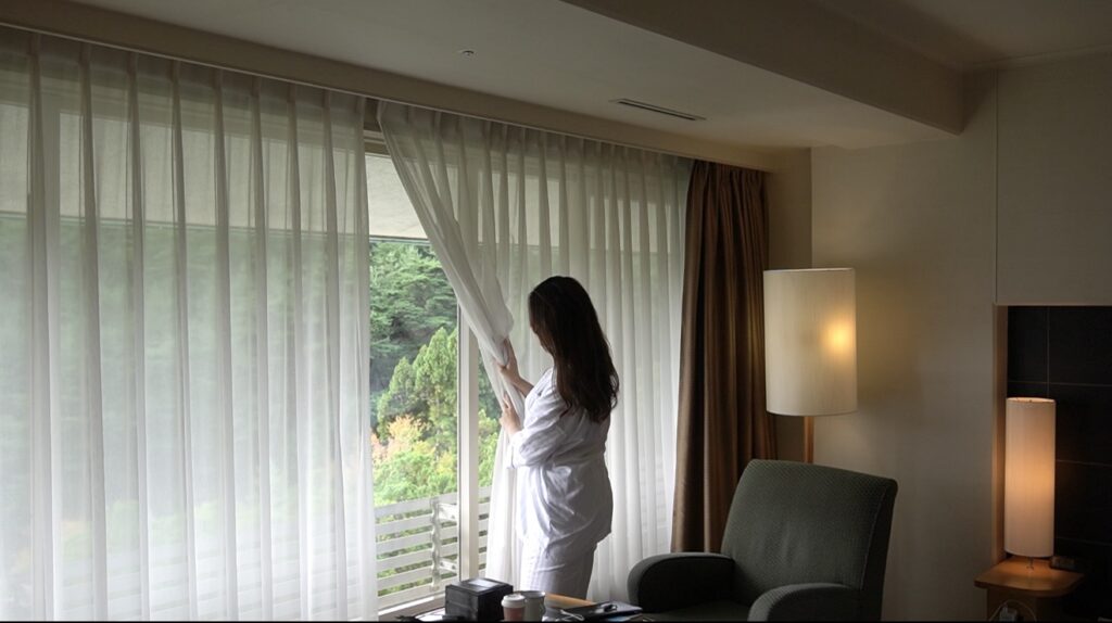 京都・洛北に佇むこのホテルは、自然豊かな宝が池公園に隣接し、四季折々の景観を楽しめる場所。館内へ足を踏み入れると、外の喧騒とは切り離されたような静けさに包まれました。都会では得られない「心が整う感覚」を、自然の力とホテルのしつらえがやさしく後押ししてくれます。