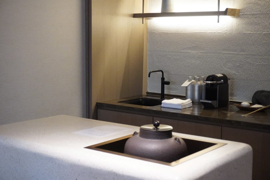 客室で点てた抹茶の香り、窓辺に射し込む柔らかな光、そして何もしない時間の心地よさ。慌ただしい日々の中で忘れかけていた“自分を整える感覚”を、そっと思い出させてくれるのがこのホテルの魅力です。滞在のすべてが美しくデザインされていて、まるで自分自身の感性が研ぎ澄まされていくようでした。