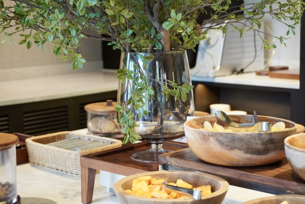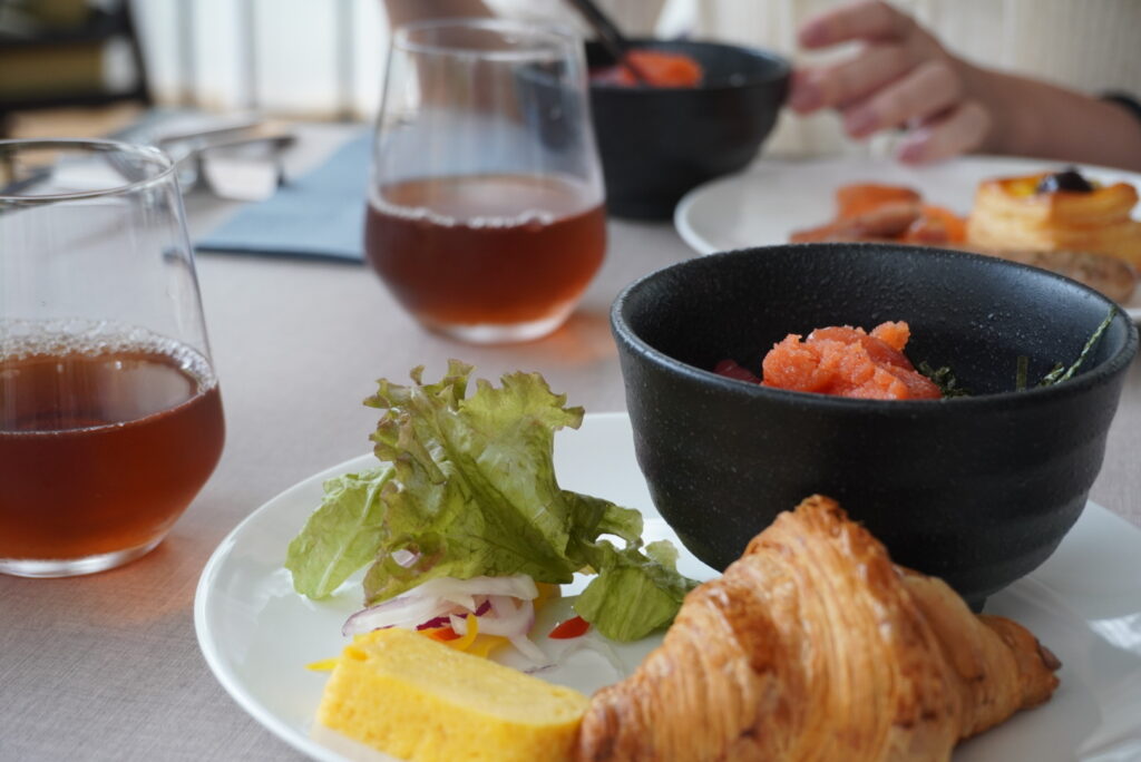 朝は、九州産の食材を使ったサラダやフレッシュジュース、焼きたてのパン、そしてシェフが目の前で仕上げる卵料理など、ヘルシーながら満足感のあるラインナップ。