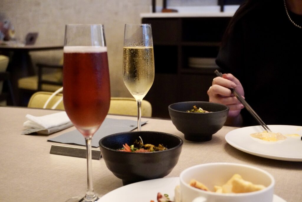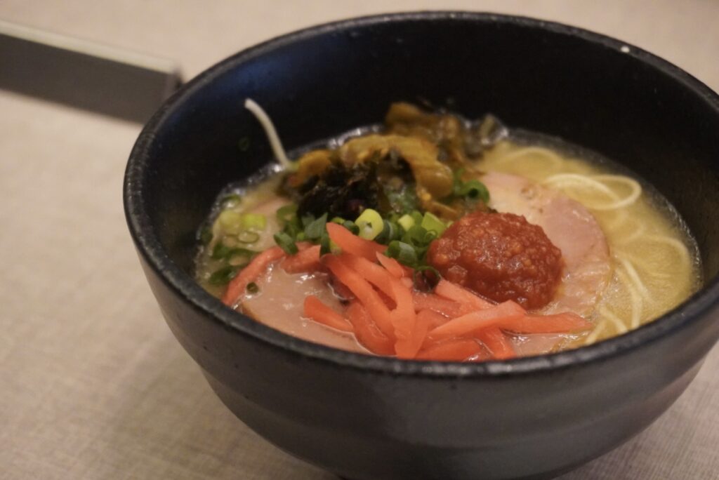 照明が落とされたラウンジで、グラスを傾けながら過ごすその時間は、まさに“大人の余白”。ミニサイズのとんこつラーメンがいただけるのも福岡ならでは。会話を愉しむのもよし、ひとりで物思いにふけるのもよし。どちらも絵になるような、静かで贅沢な時間が流れます。