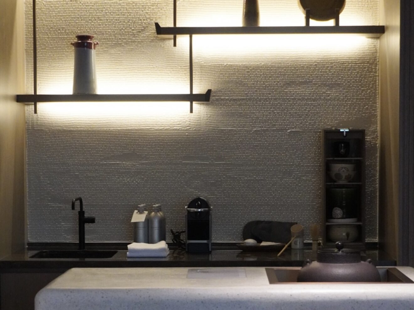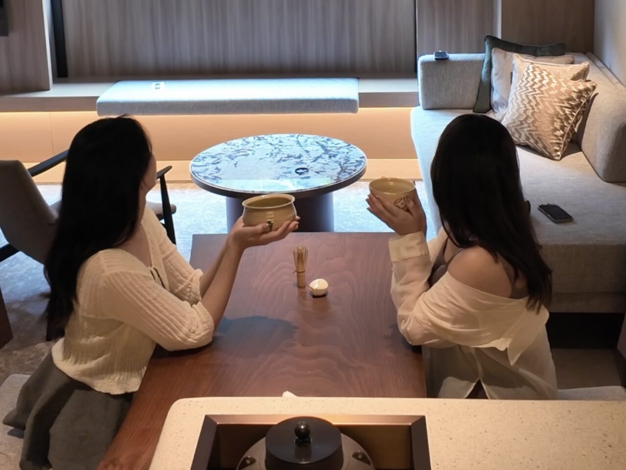 クラブラウンジフロアの新客室に設えられた「TEA BAR」では、滞在中に自身で抹茶を点てて味わうことができます。香り立つ茶筅の音、湯気に包まれる静寂。そんな一瞬一瞬が、心の奥に穏やかな余韻を残します。
