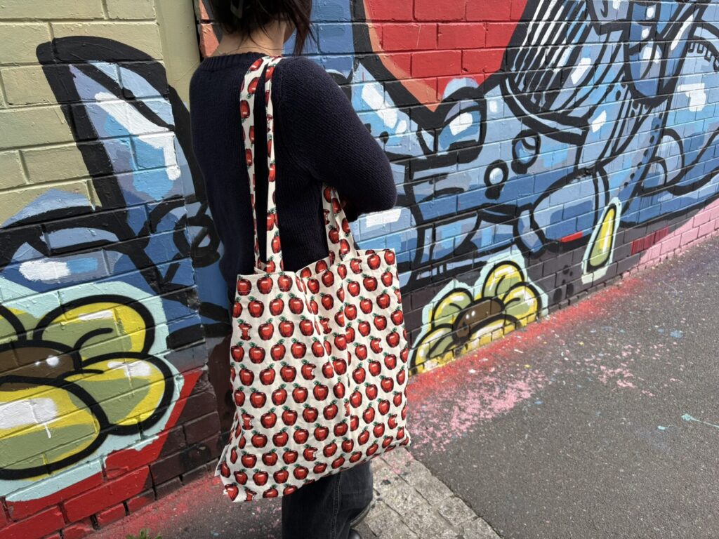 丈夫なコットン製で、ラップトップもすっぽり入る収納力。持ち手が長めで肩掛けしやすく、デザインもおしゃれ。しかも売上の一部は「Cotton On Foundation」を通じて寄付されるチャリティアイテムです。おしゃれしながら社会貢献できるのも嬉しいポイント。