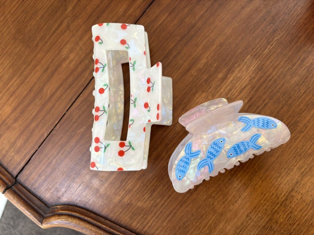 サイドをさっとまとめたり、ロングヘアをおだんごにしたりと使い勝手抜群。メルボルンでは大きなスクエア型やフルーツ、動物モチーフなど、かわいくて華奢なデザインが人気です。