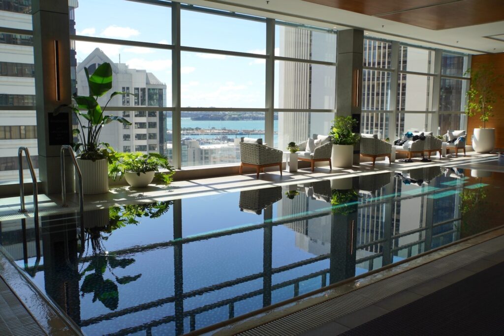 ホテルの10階には屋内温水プールがあり都市や港の絶景を眺めながらウェルネス体験が叶います。ドライサウナやジャグジーも完備。また、隣には眺望のいいフィットネスセンターもあり、ご自身のスタイルに合わせて利用できるので、ぜひ、ジムウェアと水着を持参してください。
